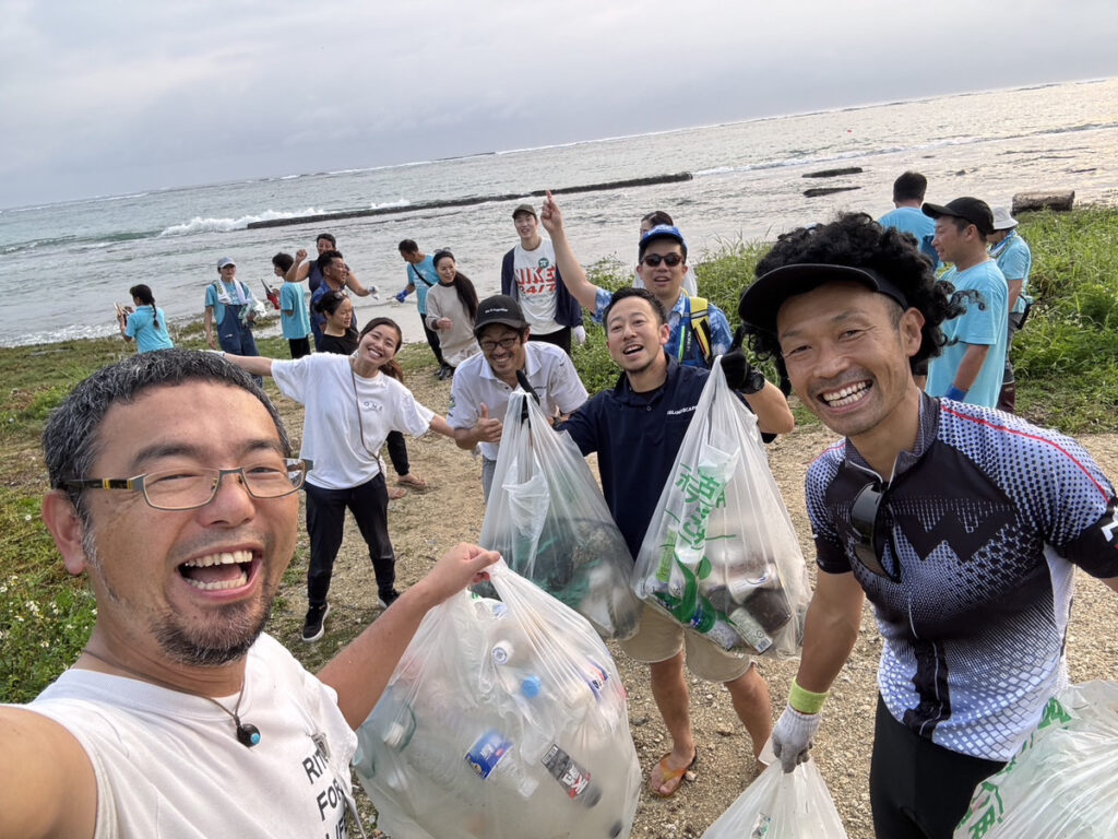 また、大会開催前には県外から訪れるトライアスリートの方々に呼びかけ、「宮古島の海をキレイにし隊」の協力のもと、ビーチクリーンも実施しました。
